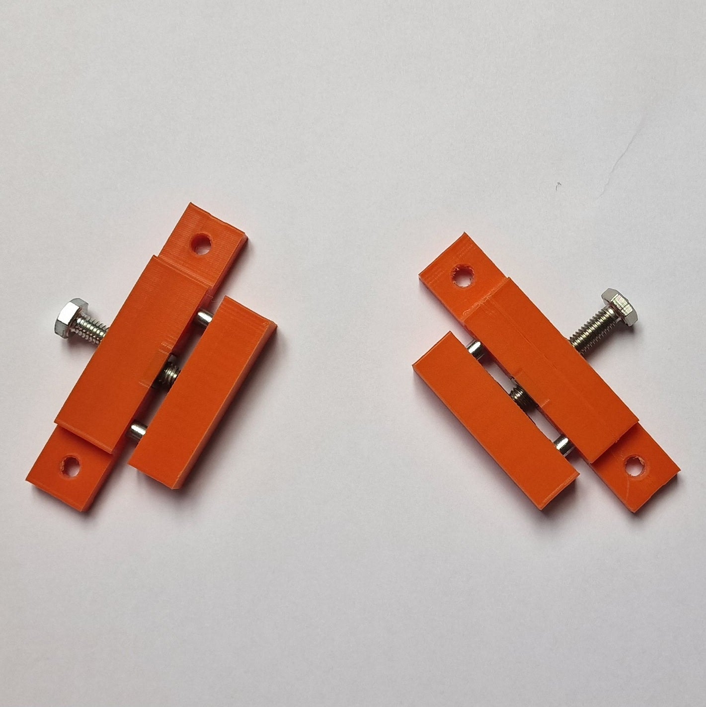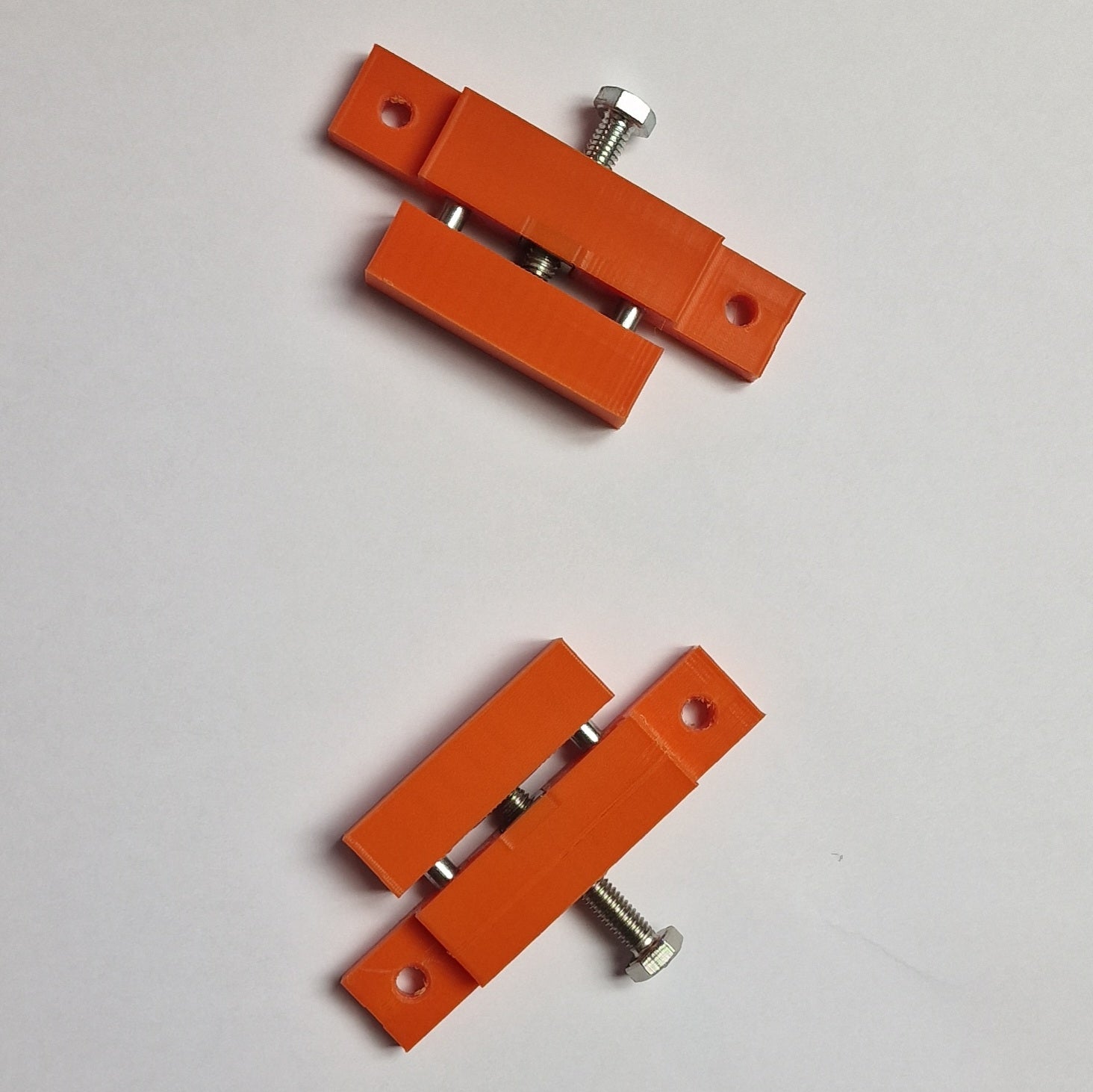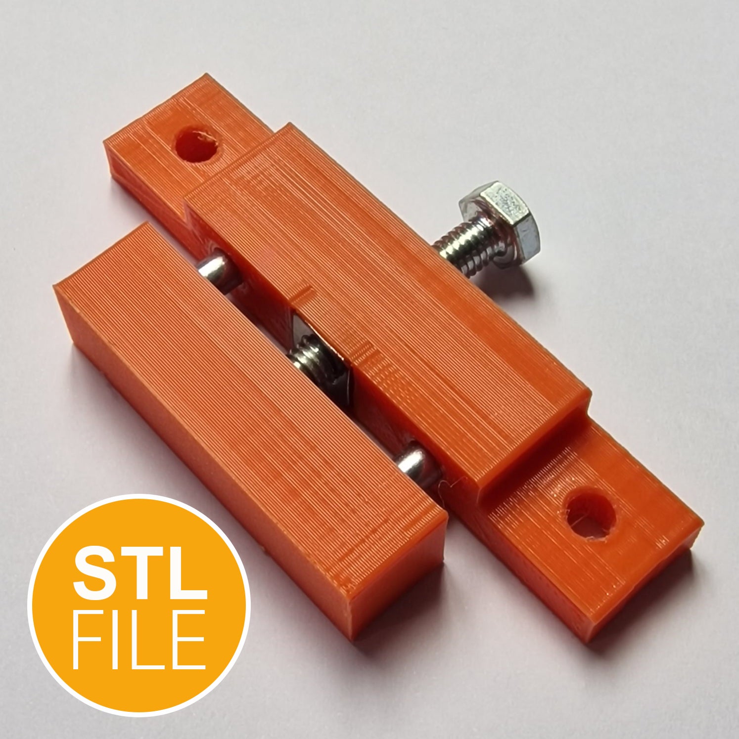 The clamp is 3D printed. Useful for clamping and holding the workpiece. It has a low profile of 12mm. Tighten it easily with your fingers or a wrench. It has a clamping action, exerts pressure on the object you want to clamp from the outside. For use in clamping plastic, aluminum, wood... The clamp is very suitable for hobby workshops as well as for all hobby CNC machines of the brands Stepcraft, X-Carve, Shapeoko, Genmitsu.
