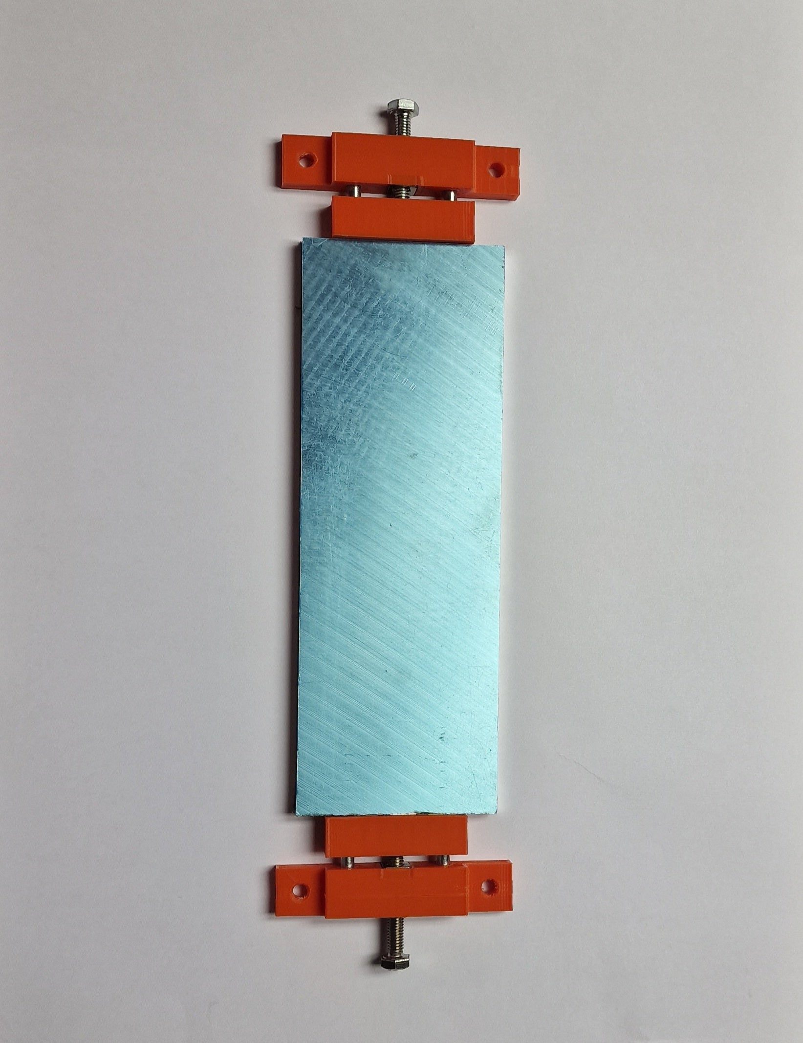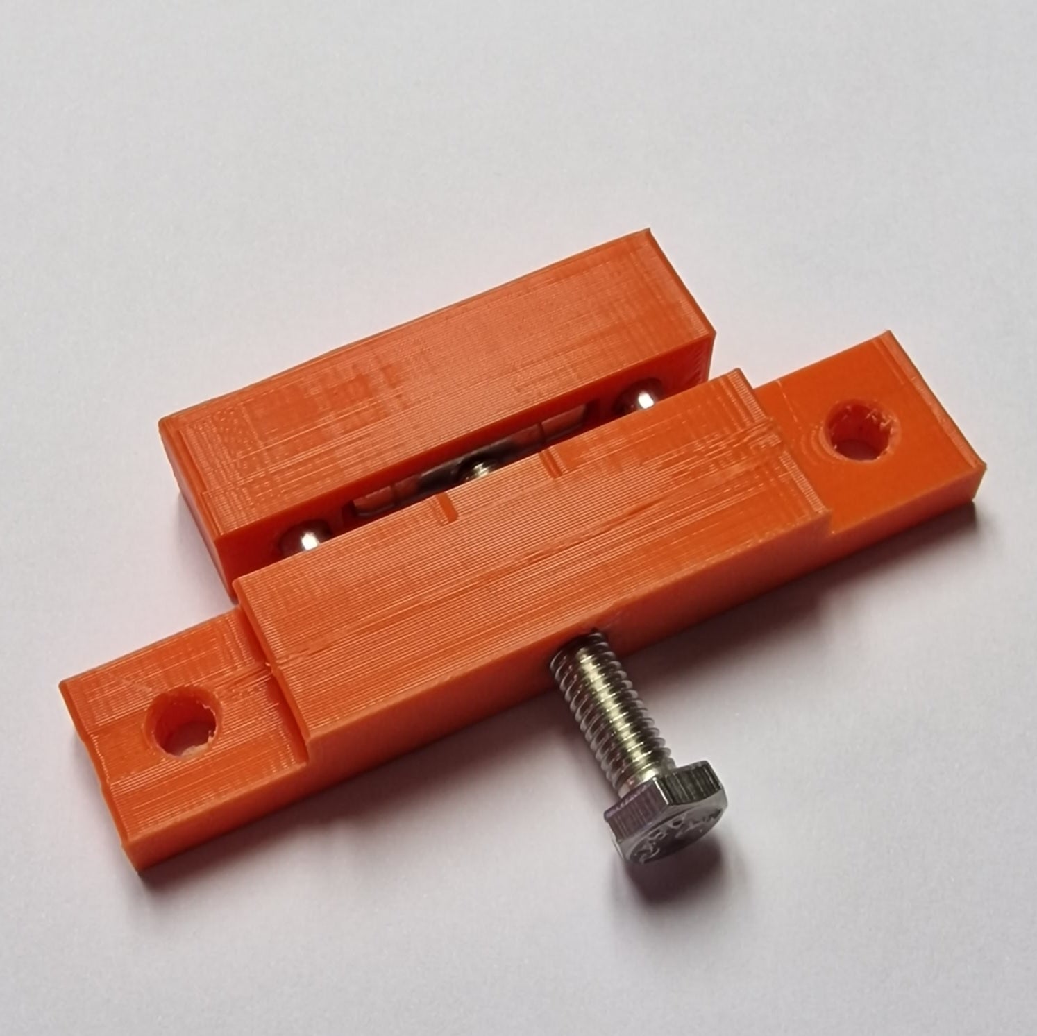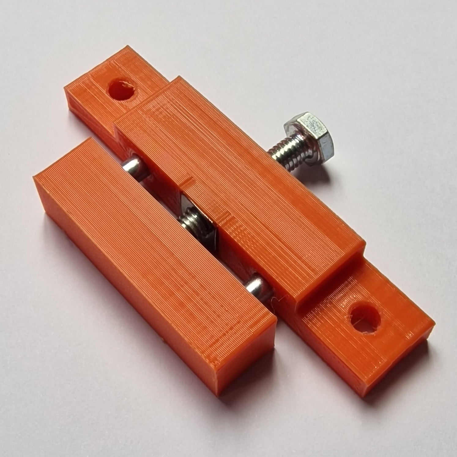 The clamp is 3D printed. Useful for clamping and holding the workpiece. It has a low profile of 12mm. Tighten it easily with your fingers or a wrench. It has a clamping action, exerts pressure on the object you want to clamp from the outside. For use in clamping plastic, aluminum, wood... The clamp is very suitable for hobby workshops as well as for all hobby CNC machines of the brands Stepcraft, X-Carve, Shapeoko, Genmitsu.