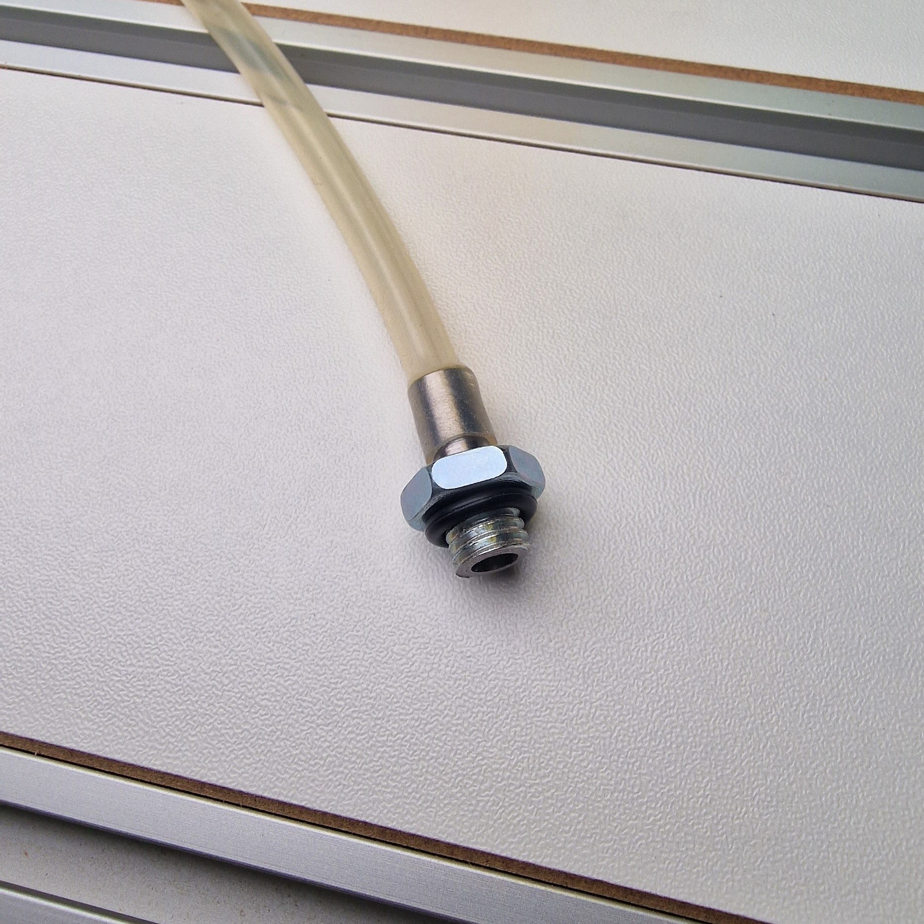 The specialty of this mounting plate is that it is made for use in milling workpieces with cooling emulsion. The cooling emulsion is poured onto the edge channel on the plate, where it is drained with the attached tube.