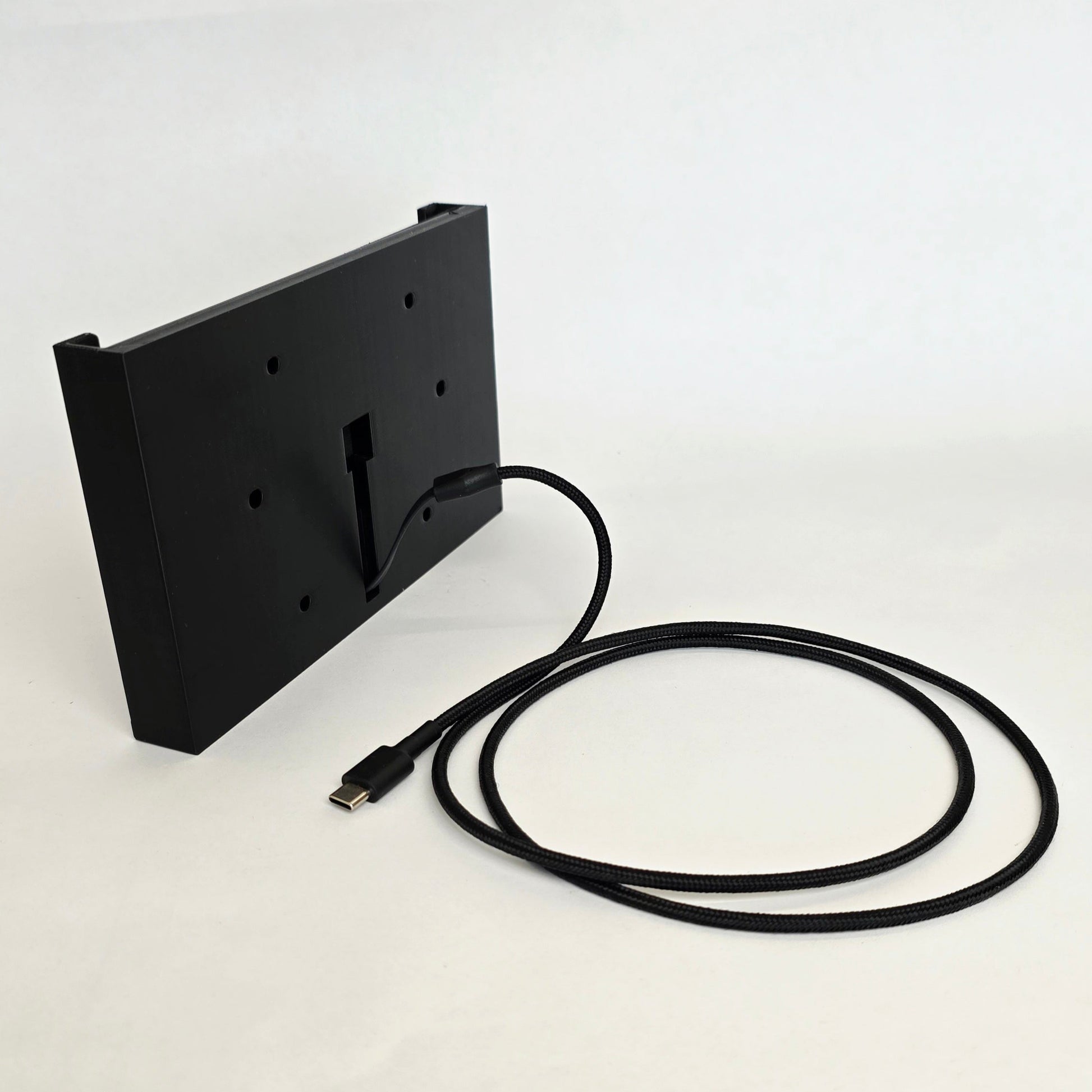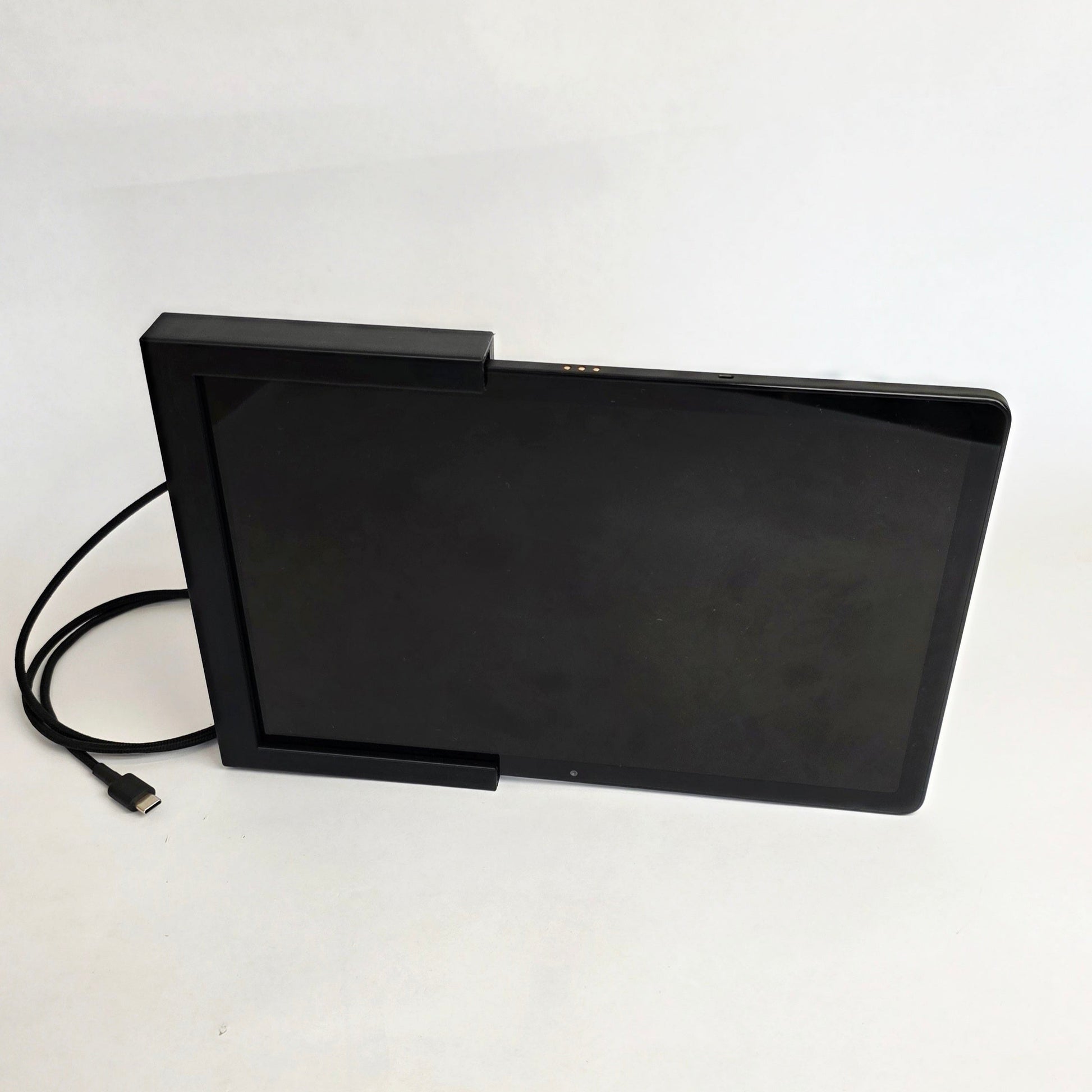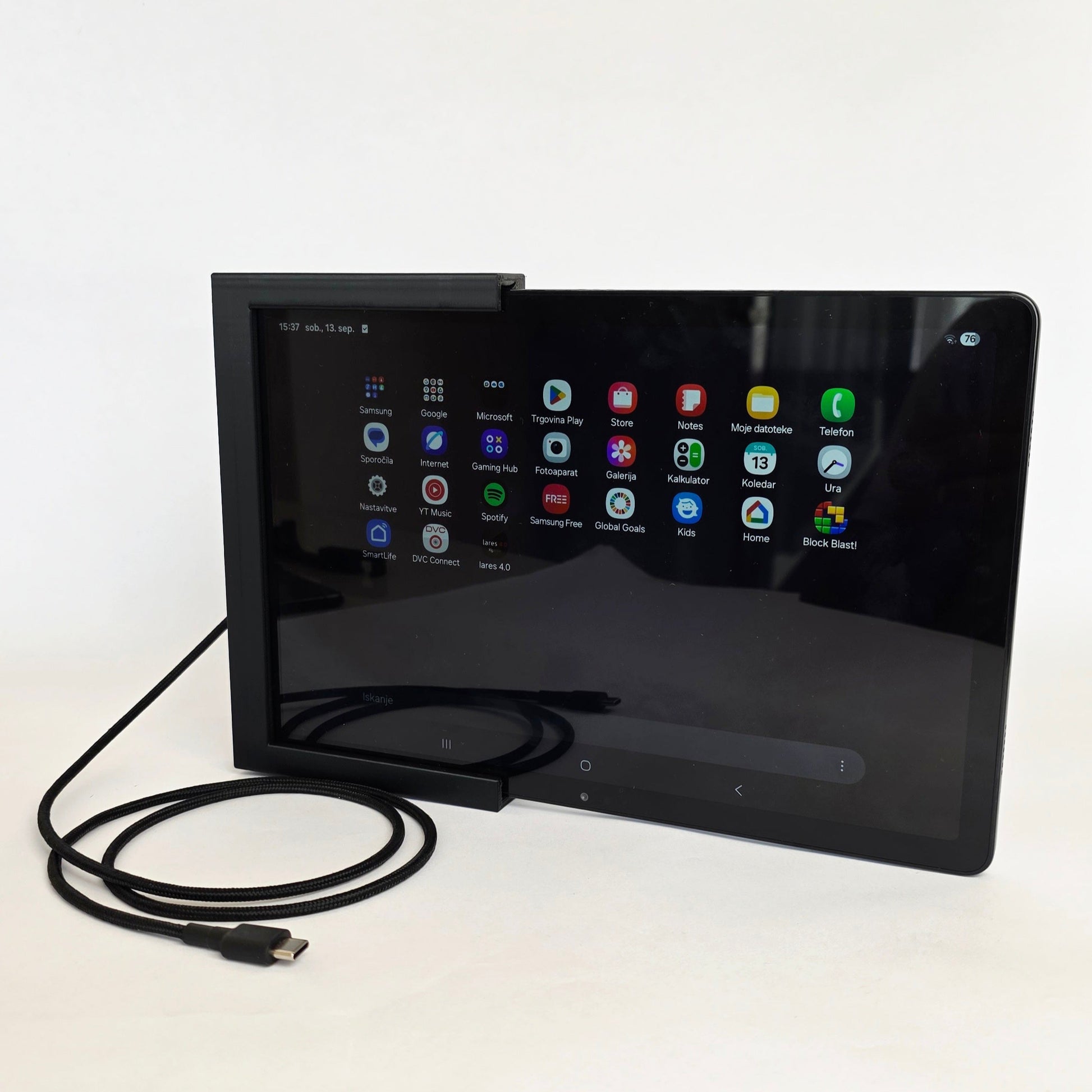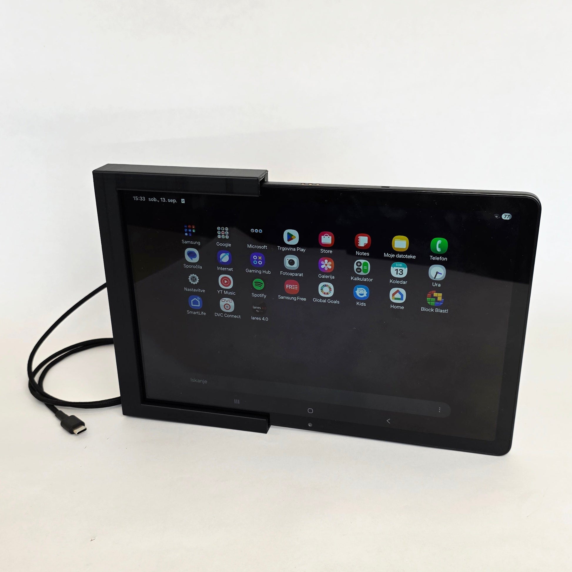 Eleganten stenski nosilec, izdelan iz kakovostne plastike, omogoča varno in stabilno pritrditev tablice na katerokoli podlago. Tablica se lahko uporablja v pokončnem ali ležečem položaju, kar omogoča prilagodljivo uporabo za pametne domove, poslovne prostore ali domačo multimedijsko izkušnjo.